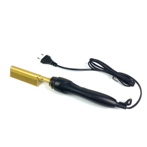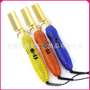黑色按键调温直发梳速热亚马逊爆款电发梳子烫发直发器...