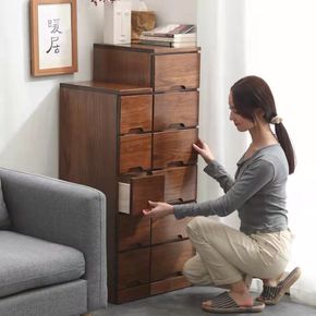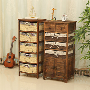 特价实木斗柜夹缝复古藤编收纳柜抽屉柜储物柜床头柜边...
