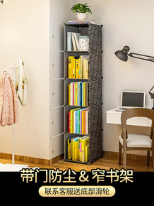 。超窄书柜书架落地简约客厅小型收纳柜子家用置物柜带...