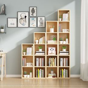 简约窄书柜落地简易儿童书架组合置物架实木格子架夹缝...