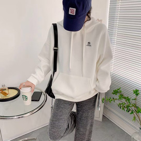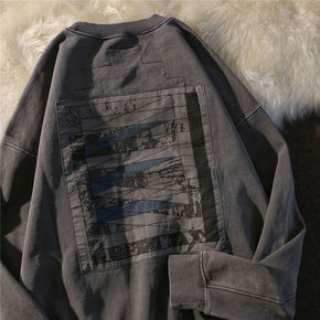 美式复古深灰色贴布刺绣卫衣女春季宽松bf慵懒风高街...