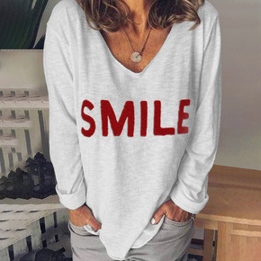 2020跨境欧美秋冬外贸新款大码女装上衣字母绣花V...