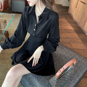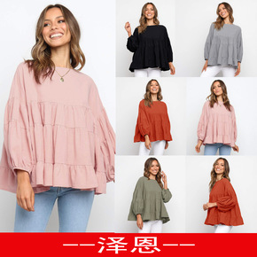 跨境女装Ebay亚马逊wish新款 纯色圆领灯笼长...