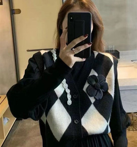 爱心刺绣针织衫女2022年冬季保暖V领毛衫网红甜美...