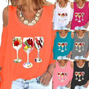2021亚马逊wish新款欧美跨境秋冬女装上衣露肩...