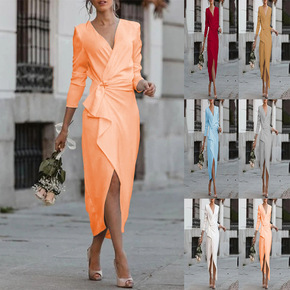 欧美跨境女装2021亚马逊eBay独立站秋冬新款V...