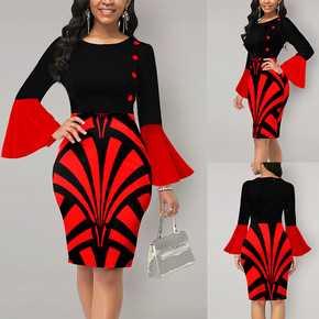速卖通2021秋冬女装新款跨境欧美货源圆领长袖收腰...
