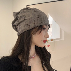 显脸小韩版帽子女夏季薄款月子帽日系毛线帽百搭针织堆...