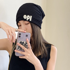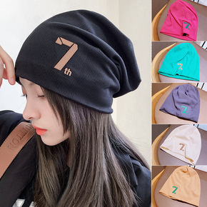 春秋时尚韩版堆堆帽女潮流显脸小薄款棉百搭针织字母包...