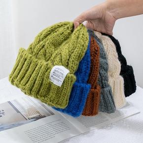 秋冬女款韩版针织毛线帽女粗线麻花毛线女帽保暖护耳包...