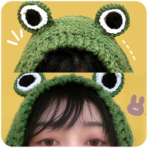 秋冬季可爱卡通青蛙护耳帽子针织毛线帽儿童保暖耳罩头...