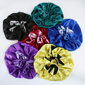 新款欧美纯色色丁女浴帽缎面内衬双层头套睡帽 特大号...