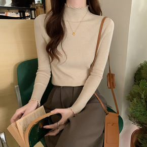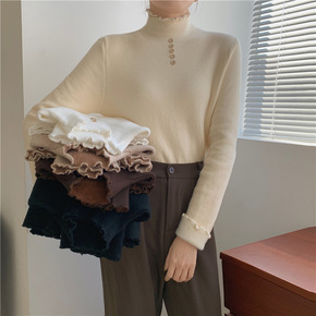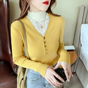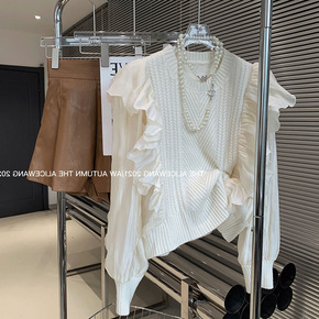 乖到不行!!!长袖 拼接针织衫上衣女秋设计感木耳边...