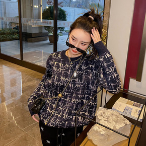 网红ing2021秋冬新款D家炫彩满身字母提花圆领...
