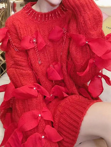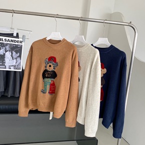 —————————可爱甜美胸前小熊图案圆领毛衣 ...