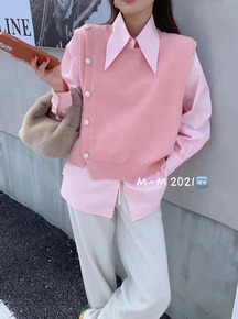 春季新款小清新针织马甲女韩版纯色时尚斜扣毛衣背心衬...