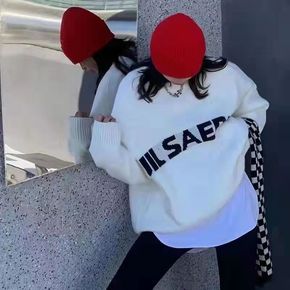 字母毛衣女宽松韩版欧洲站2021秋冬新款套头慵懒风...