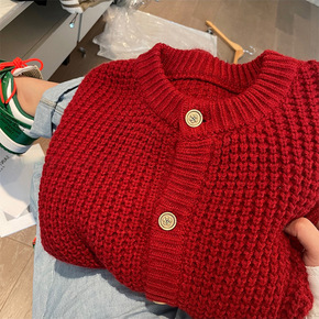2021新款慵懒风宽松毛衣女秋冬外穿ins潮果糖色...