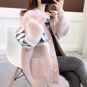 欧货针织开衫女春秋外搭2021新款软糥慵懒风中长款...