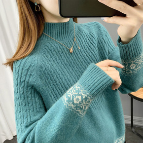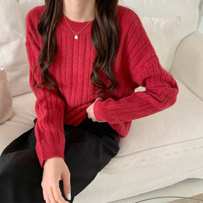 麻花毛衣女日系复古圆领套头秋冬外穿宽松长袖慵懒风粗...