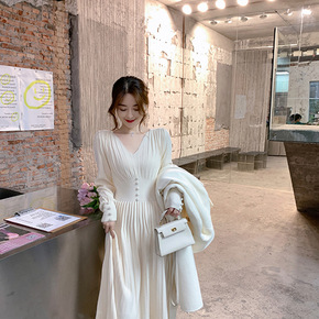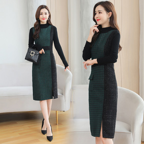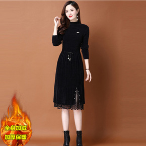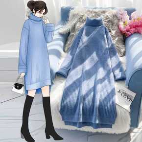内搭小高领打底裙到脚踝 过膝超长款连衣裙 长袖包臀...