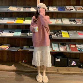 现货!2021冬季日韩乐天新款宽松显瘦高领长袖针织...
