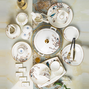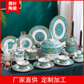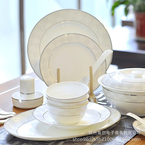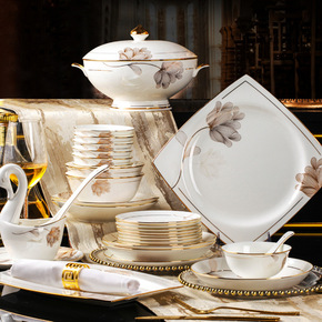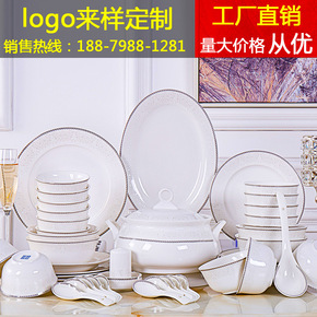 餐具套装 碗碟盘厂家直销景德镇高档金边骨瓷餐具 家...