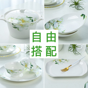 景德镇青玉瓷碗碟套装简约实用家用面碗盘子自由组合礼...