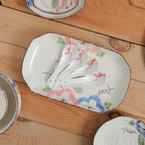 玉泉七里香碗碟餐具套装韩式手绘米饭碗汤碗菜盘鱼盘组...