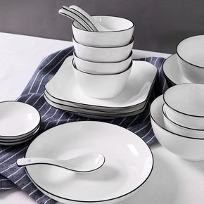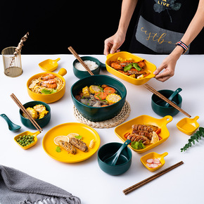 北欧风轻奢碗碟组合套装家用吃饭碗菜盘子汤碗餐具套装...