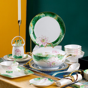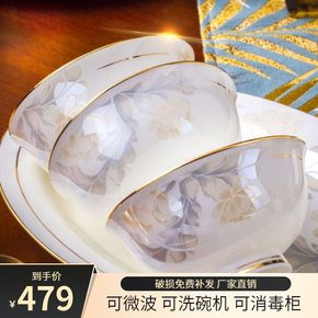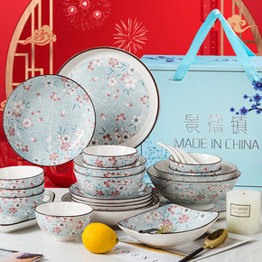 乔迁新居餐具套装碗碟家用景德镇陶瓷日式吃饭碗盘送礼...