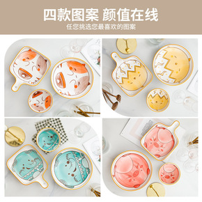 .萌宠系列 陶瓷餐具盘子 可爱动物家用手柄盘烤盘米...