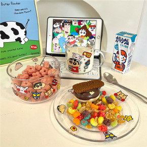 可爱卡通印花童趣高硼硅耐高温沙拉碗牛奶杯甜品盘玻璃...