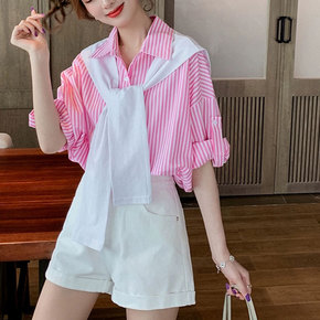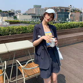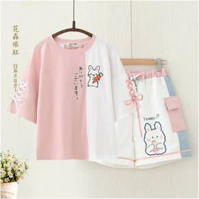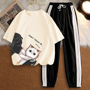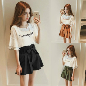 网红超火ins短袖t恤上衣假两件运动休闲套装女夏季...