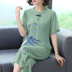 短袖运动套装女2019新款时尚气质休闲妈妈夏装宽松...