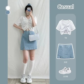 泫雅网红减龄两件套女夏韩版INS潮短款露脐短袖T恤...