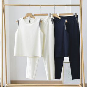 BC2022休闲套装女棉T恤无袖背心显瘦松紧腰长裤...