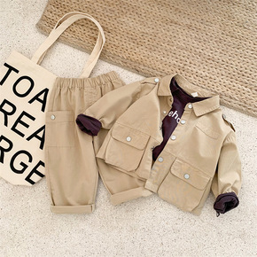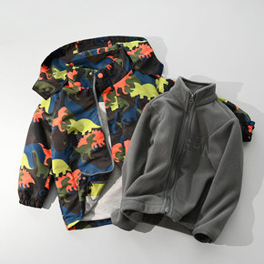 两件套 儿童迷彩风衣外套 男童女童加绒棉服连帽上衣...