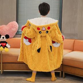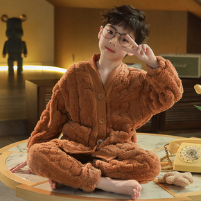 儿童法兰绒睡衣冬季男童睡袍珊瑚绒加厚款套装中大童小...