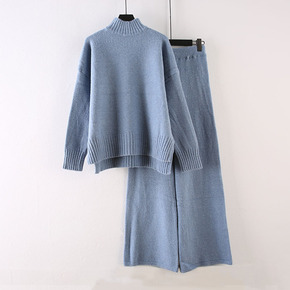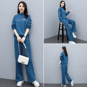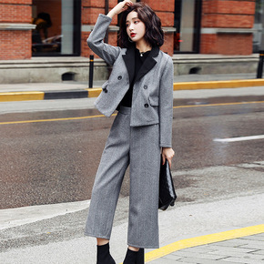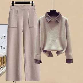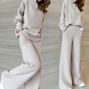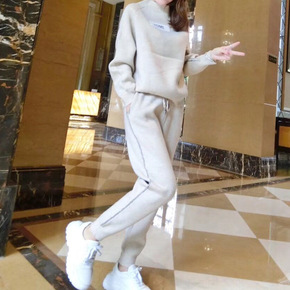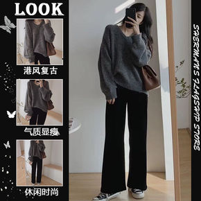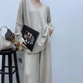 欧美2022秋冬季洋气减龄双面羊绒宽松休闲裤两件套...