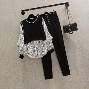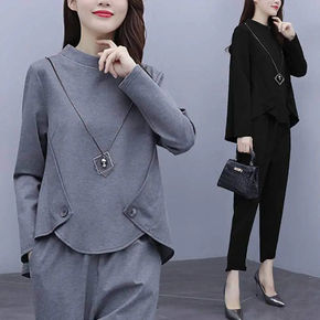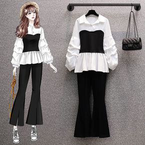 大码女装秋装2021新款减龄套装女胖妹妹洋气收腰衬...