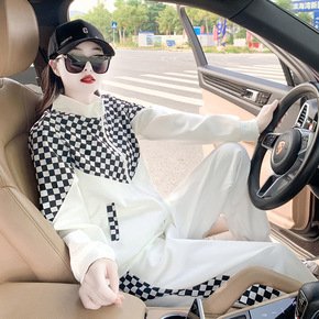 运动套装女秋冬季时髦洋气网红炸街休闲时尚棋盘格卫衣...