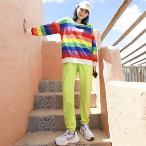 抖音款圆领长袖字母卫衣女2021新款冬高腰抽绳拖地...