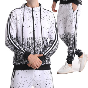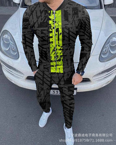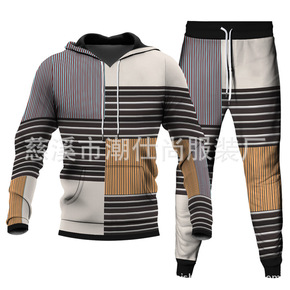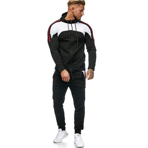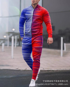 2021新款外贸爆款欧美潮流运动休闲套装男士拼色长...