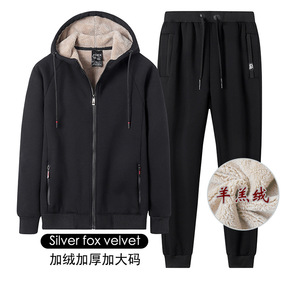9590冬休闲套装男加绒加厚保暖羊羔绒加肥加大肥佬...
