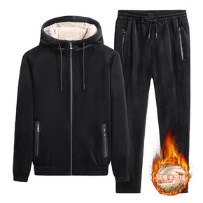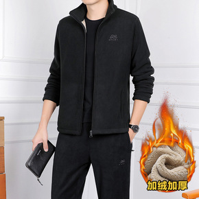 2020棉冬季中年休闲套装男加绒加厚羊羔绒保暖外套...