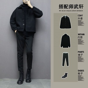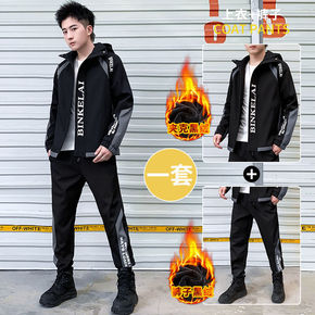 青少年秋冬运动休闲套装男韩版潮流帅气宽松加绒加厚时...
