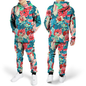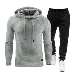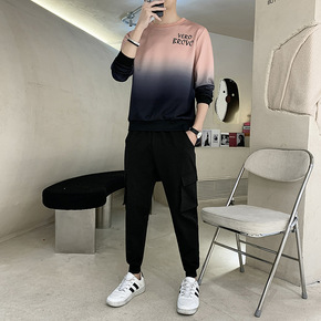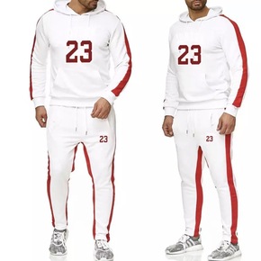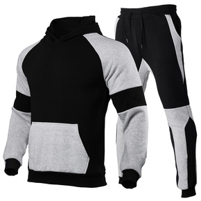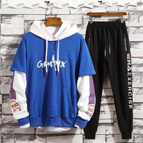2021跨境外贸新款卫衣男士套装潮牌拼色休闲运动跑...