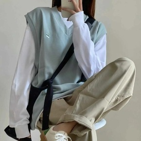 单件/套装 衬衣春秋新款韩版衬衫+针织毛衣开衫马甲...