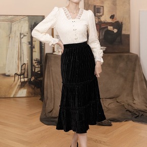 韩版秋季新款气质翻领单排扣中长款衬衫+复古百搭半身...